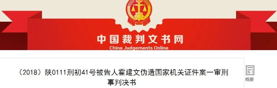 被告人霍建文犯偽造國家機關證件罪,判處有期徒刑六個月,并處罰金200000元。(刑期自判決執(zhí)行之日起計算。判決執(zhí)行以前先行羈押的,羈押一日折抵刑期一日,即自2017年11月1日起至2018年4月30日止。罰金已繳納。)